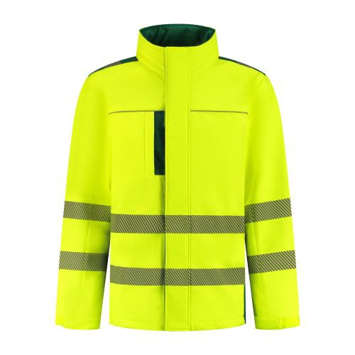 - Hi-Visibility Softshelljacke mit faltbarer Kapuze